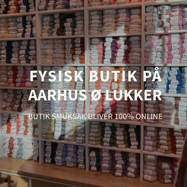 Tak til hver eneste af jer, der har besøgt os på Aarhus Ø siden juni 2020. Mange af jer kender jeg ved navn, jeres yndlingsgarn og hvordan I strikker. Det er de små ting og mødet med jer, der har gjort butikken så særlig for mig. Jeg kommer til at savne jer og butikken, men glæder mig til at fortsætte rejsen online og holde kontakten med jer på nye måder.