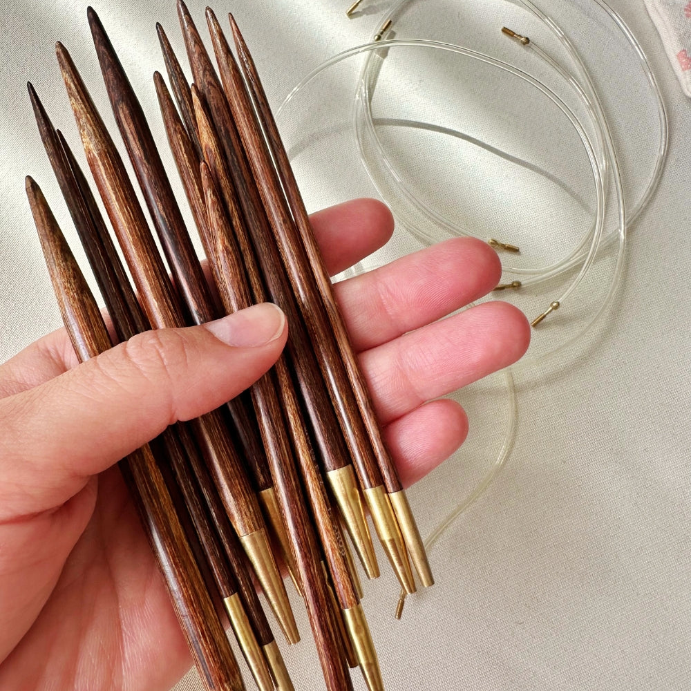 Hos Butik Smuksak finder du et godt udvalg af forskellige typer strikkepinde. Både strømpepinde, ergonomiske strikkepinde, faste rundpinde og udskiftelige rundpinde i mange størrelser og længder. Vælg mellem forskellige materialer, såsom robust træ, metal og plastik.